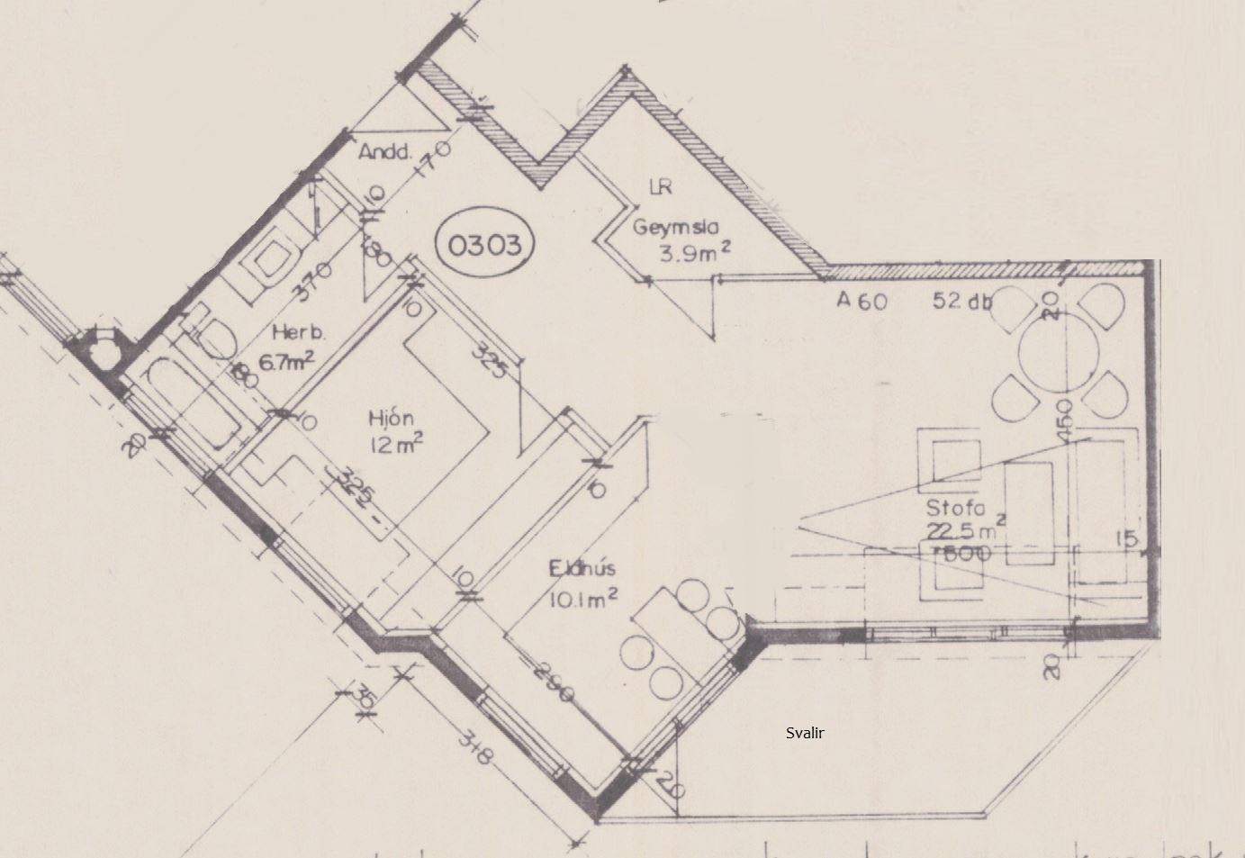 Baðherbergi: Fallega endurnýjað flísalagt gólf. Veggir málaðir og/eða með veggfóðri. Sturtuklefi í horni og vaskaskápur með handlaug. Tengi fyrir þvottavél á baðherbergi.